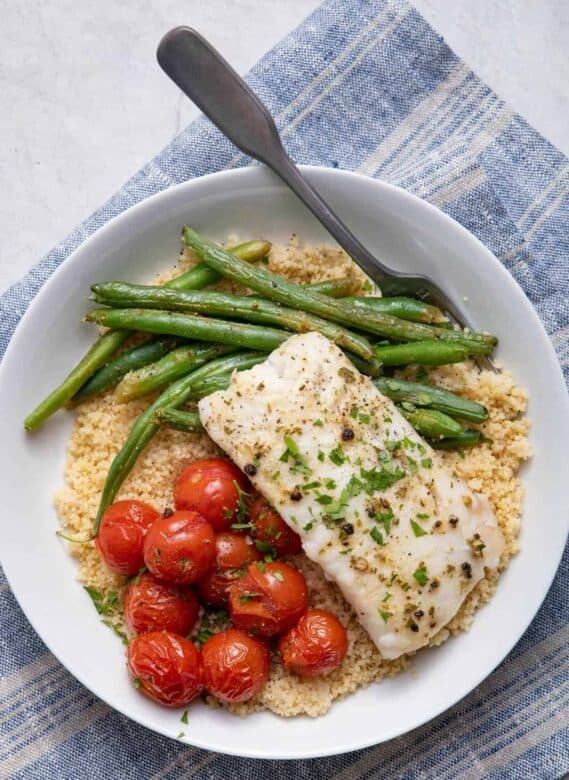 - Oven Baked Cod – Cooked on a sheet pan with green beans and cherry tomatoes, this oven-baked cod makes one of the best lazy summer dinner ideas. Add everything to a baking sheet and pop it in the oven for 15 minutes. Quick, easy, and oh-so-delicious – just my kind of summer meal.