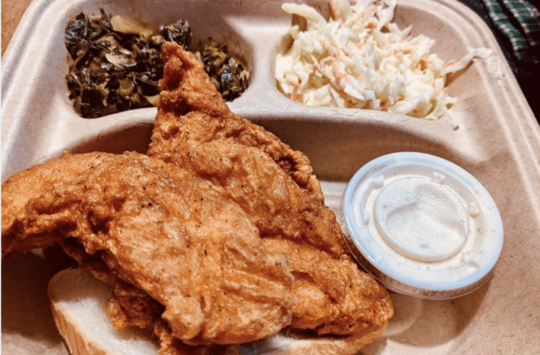 You can order individual pieces, plates, or snack platters. The plates include baked beans, slaw, and white bread. You can also add some sides like mac & cheese, seasoned fries, or fried oktra. Enjoy!