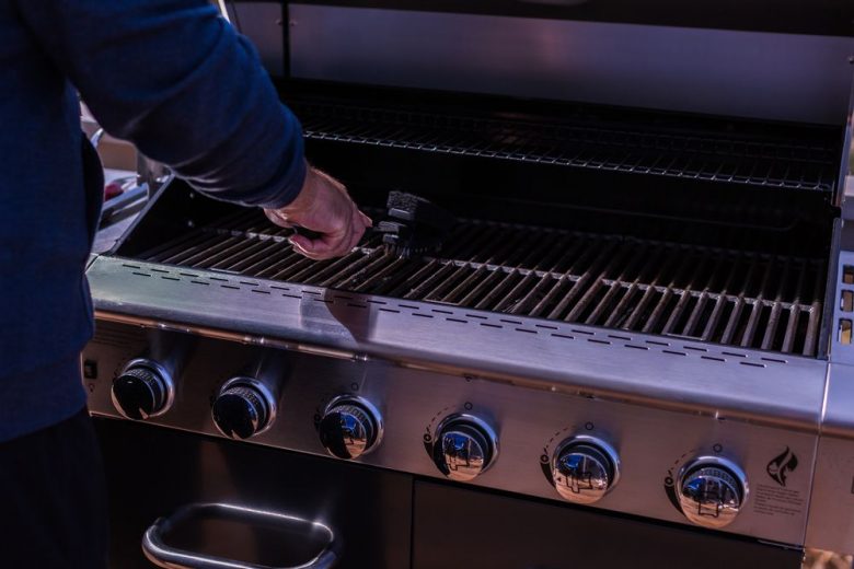 Next, clean the grill’s burners with a non-abrasive cleaner and a cloth. You’ll want to keep drip trays dry and clean, as they can be especially vulnerable to moisture build-up. With a pipebrush, clean the burner holes and inlet holes too.