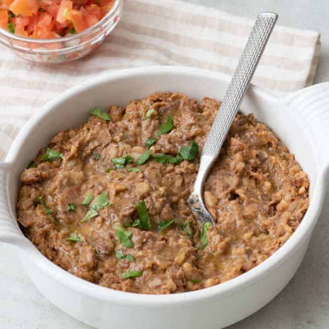 • Refried Beans – Make this traditional bean dish in the Instant Pot and serve it as a dip or alongside other favorites. It creates a creamy, flavorful, and vegan accompaniment and is made with just a few ingredients.