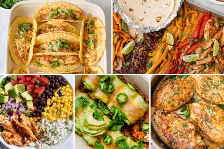 • Chicken Fajita Stuffed Peppers – Chicken stuffed peppers are made with a fajita-style blend of onions, garlic, Tex-Mex spices, and chicken and oven-baked until tender, cheesy, and oh-so-delicious!