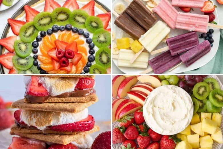 • Fruit Pizza – Fresh, fun, and healthy! This fancy but easy dessert has cream cheese frosting and topped with fresh fruit like strawberries, kiwi, blueberries, and peaches. It’s guaranteed to be a hit at your party!