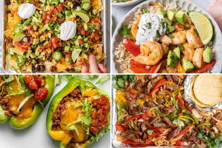 • Sheet Pan Steak Fajitas – You will love this easy Tex-Mex sheet pan meal. It’s made with flavorful beef, bell peppers, and onions and generously seasoned with taco seasoning and roasted in the oven until perfectly tender.