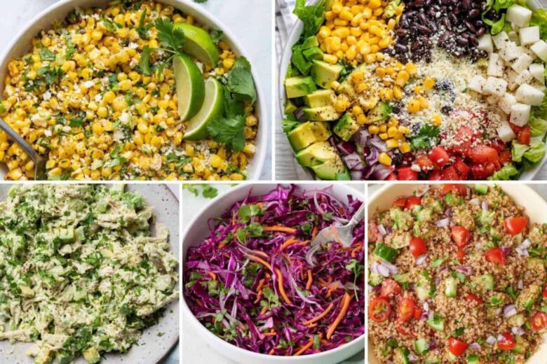 • Mexican Street Corn Salad – Also known as Elote salad, this summer dish combines salty, melt-in-your-mouth cotija cheese, fresh cilantro, tangy lime, garlic, and jalapeno with frozen corn. It’s an addicting salad that’s perfect for your Cinco de Mayo fiesta!