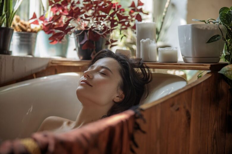 If you decide to take a bath, you can turn it into a nightly ritual. Consider playing soothing music, using a lavender-scented bath bomb (since that particular aroma is known for its relaxing qualities), and sipping an herbal tea. Use luxurious bath towels to make it a spa-like experience.
