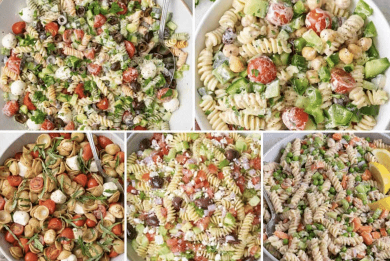 • Italian Pasta Salad – Tricolor rotini pasta, fresh veggies, and bite-sized mozzarella balls, all tossed in a zesty yet creamy Greek yogurt dressing. This dish adds a vibrant touch to any BBQ, picnic, or potluck.