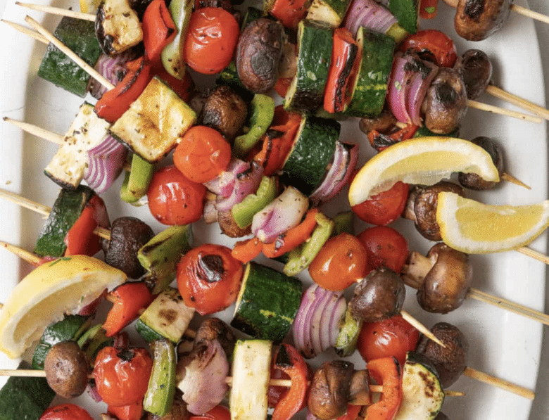 • Veggie Skewers – No cookout is complete without vegetables! These veggie kabobs combine a variety of your favorite grilled vegetables on a stick – because food on a stick is just more fun!