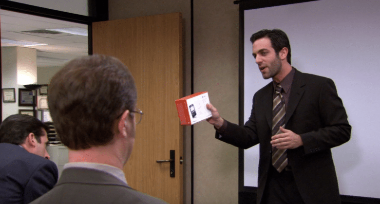 Even Sabre knew this was a bad idea, with Robert California planning to fire Dwight for the store’s failure. While Jim tries to sell the triangular phone tablets as “a shape that fits all other shapes inside of it,” at the end of the day, they’re really just bulky, cheap and hard to use. And Jim using his phone instead of his Pyramid phone ends in another fumble when a blogger posts it as a “failure.”
