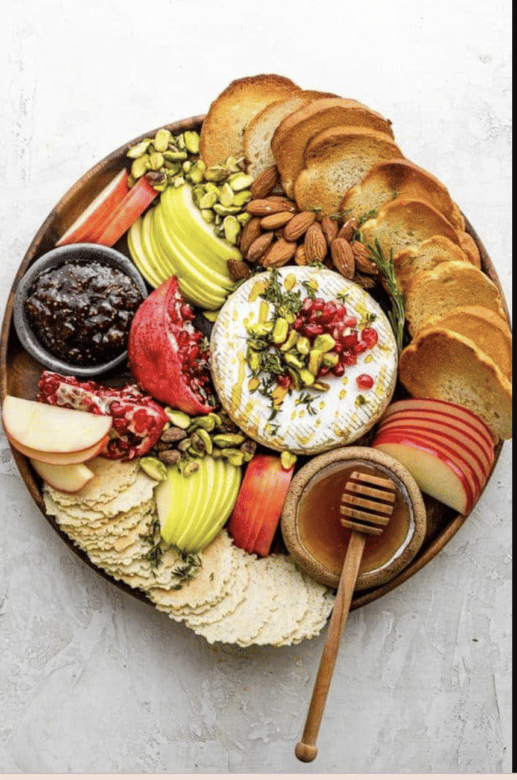 This Baked Brie appetizer is a cheese platter that will leave your guest speechless. Served on a Charcuterie board with apples, nuts, and crackers!