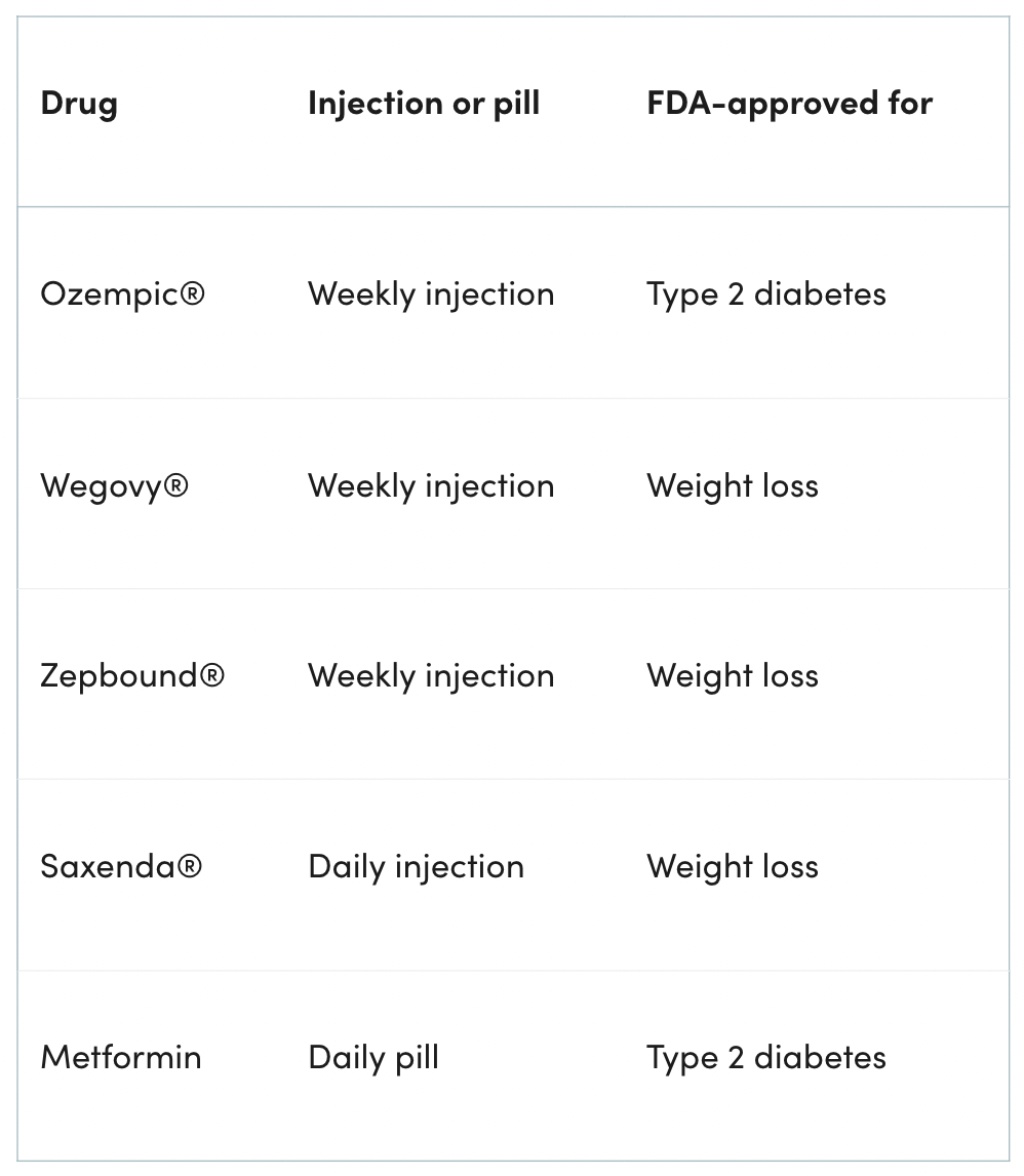 In some cases, your provider may recommend a medication FDA-approved for another condition, like diabetes, but prescribed off-label for weight loss — such as Ozempic® and Mounjaro®. But there are plenty of FDA-approved weight loss drugs if you’d prefer to stick to those.