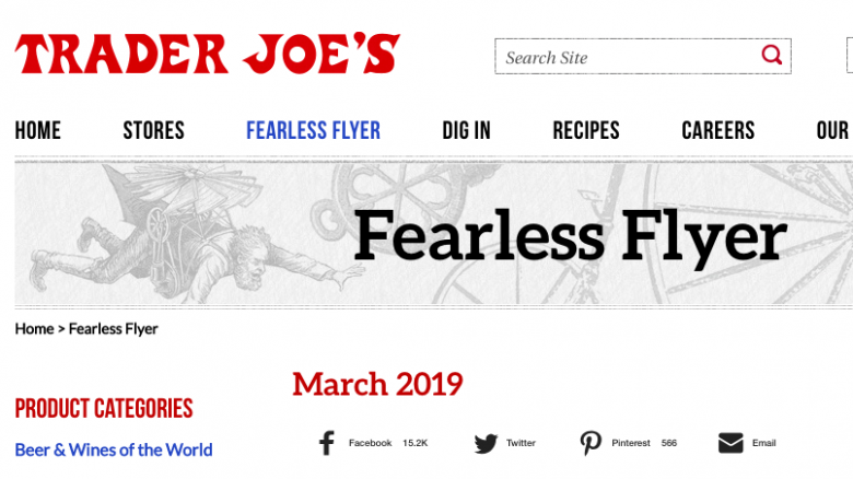 Trader Joe’s puts out a circular called the “Fearless Flyer” that shoppers can request by mail or check out online. It features seasonal products that are sometimes on sale.
