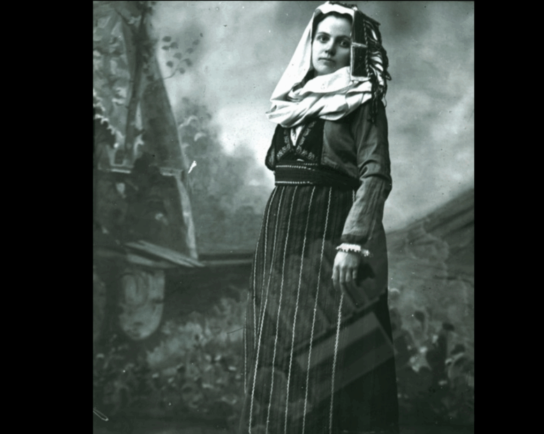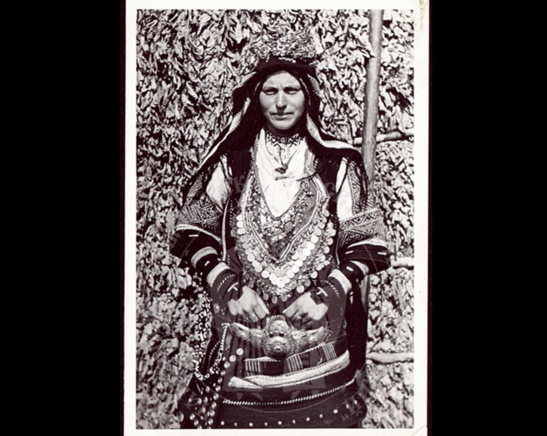 A woman wearing Karakachan folk costume and accessories.