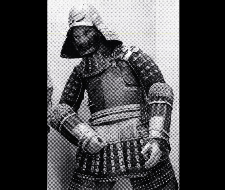 A Japanese samurai wearing his full costume.