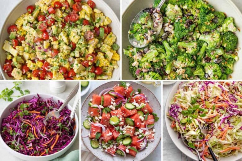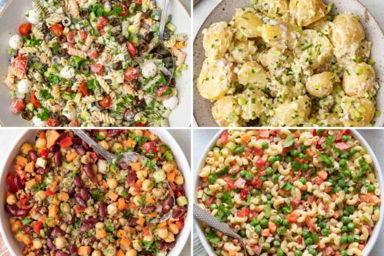 Most of these sides can be prepared in advance to make hosting easier. Salads, slaws, and pasta dishes can often be made a day ahead and stored separately from the dressing in the fridge. Many hot sides can also be made in advance and then reheated when ready to serve. Be sure to follow the make-ahead instructions for individual recipes.