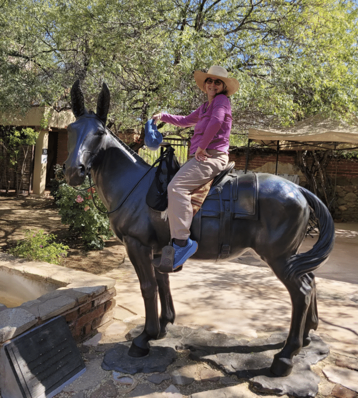 We called a Didi, the local Uber, and soon were racing through the dark streets toward a brightly lit city that seemed ten times bigger than we recalled. In fact, La Paz had over 250,000 residents at the last census, and some say the population is closer to 300,000 by now. Peggy opened her gate when I texted and we three came into the main house to be greeted by her other friends, a family visiting from Mexico City. The big round table was set with colorful linens and a choice of wine or tequila was poured. We chatted in Spanglish through a delicious dinner of fresh fish in garlic and butter with grilled vegetables. Not long after dinner, we went out to the back garden where our tiny brick casita beckoned us and we soon sunk into our cozy bed.