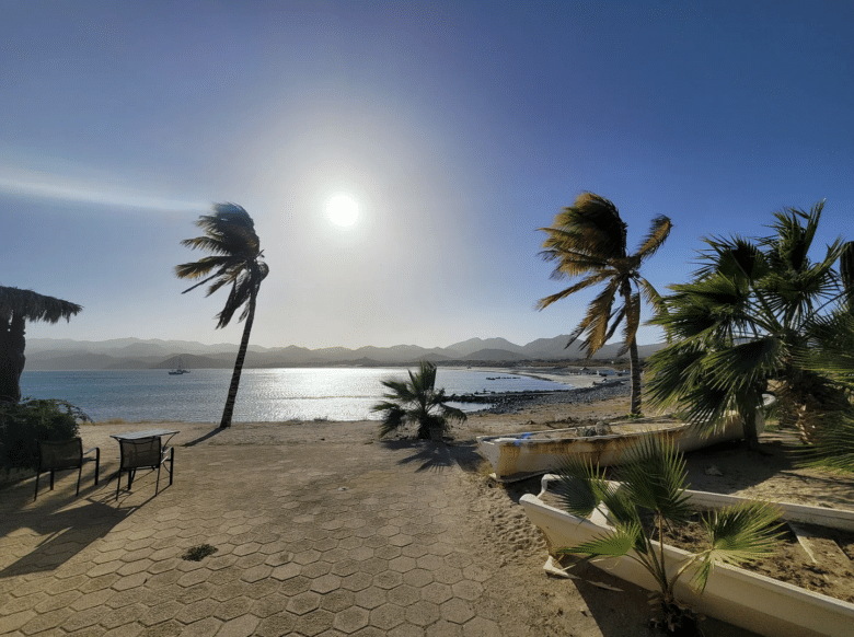 Walking out the gate the next morning in the pre-dawn twilight, I could hardly see to navigate the uneven sidewalk. But as I turned onto the avenue, I could see a dozen people out and about in the half light—sweeping their store’s stoop, wiping down tables at coffee stands, walking to work or to church for morning mass (the bells had been ringing). As I walked along the nearly dark street, each person I passed murmured a buenos dias or buen dia with some men touching their hat brims or nodding gravely as they greeted me. I responded in kind. As I stepped onto the malecon and the sun lightened the sea, I realized that it hadn’t even occurred to me to be afraid of walking at that early hour through a “foreign” city. La Paz felt comfortable, homey. And I felt seen, and respected, by all I encountered.