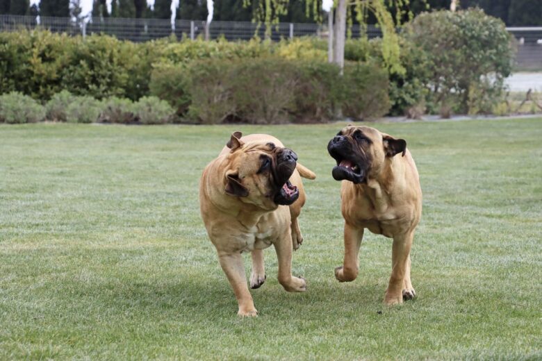 Bullmastiffs were originally bred to guard estates, and their fearless nature reflects that history. Standing between 24–27 inches tall and weighing 100–130 pounds, they are powerful and brave protectors. While they aren’t quite as large as their Mastiff relatives, Bullmastiffs are still strong, muscular dogs with a calm and affectionate side, especially with their families. Early training and socialization are crucial to ensure they grow into well-behaved companions, as their natural guarding instincts can make them wary of strangers.