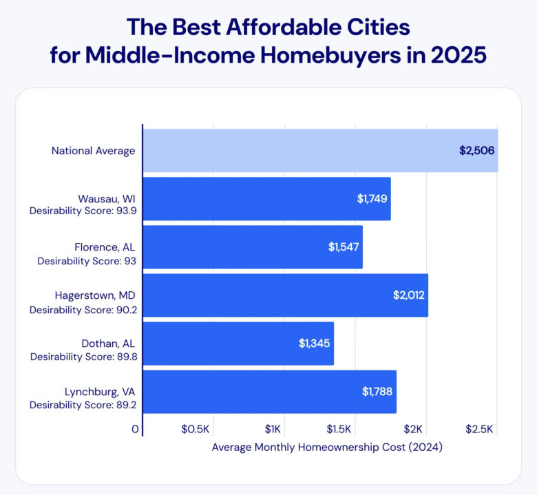 Insurify considered the latest Fannie Mae projection of 6.3% mortgage rates by the end of 2025 to create this ranking. Data analysts assigned cities a proprietary Desirability Score based on cost of living, unemployment, and crime rates.