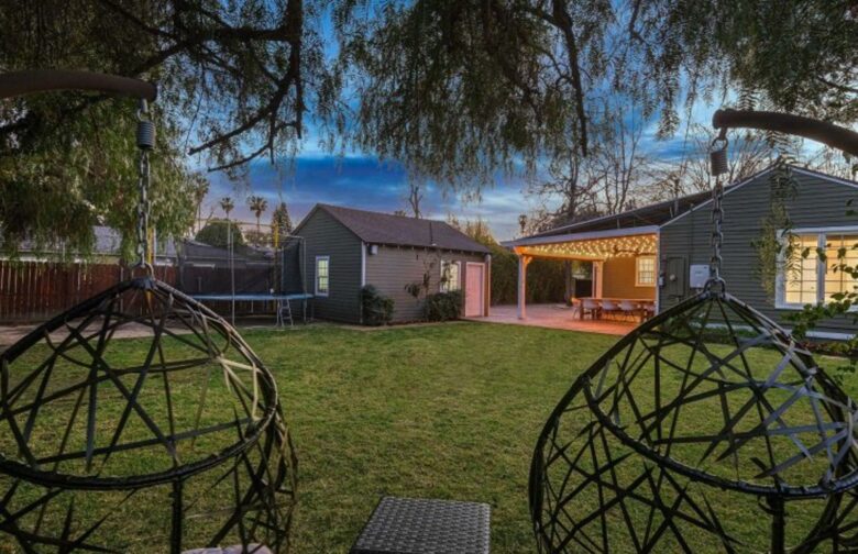 Outside, you’re unlikely to find any traces of the egging the house got from Michael Scott. You will, however, find a lovely backyard with a beautiful pergola and tons of space for entertaining guests (or for adding a pool).