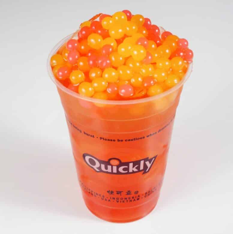 If you’re searching for a drink that looks like summer but tastes icy cold, try the rose tea bubble tea. It’s topped off with a myriad of orange and yellow tapioca pearls in a cup of rose-flavored tea.