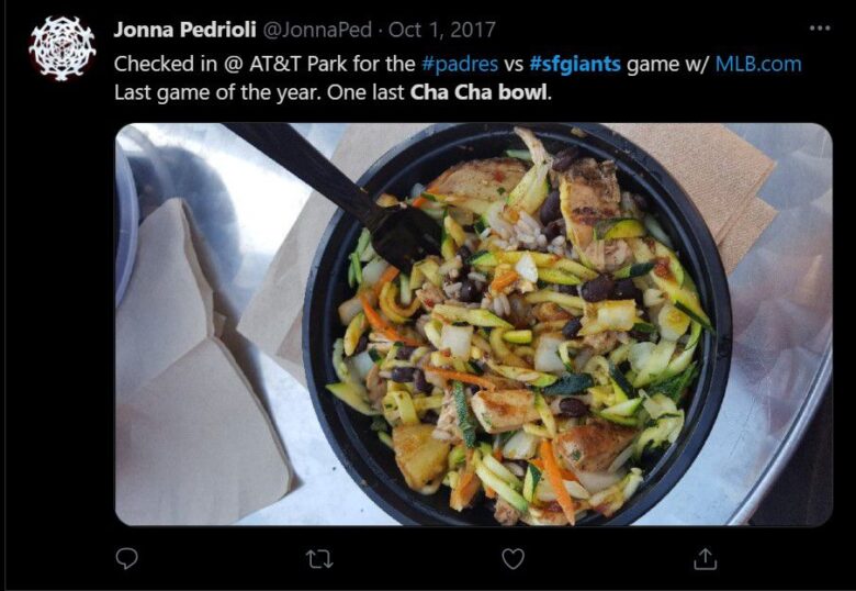 Caribbean barbecue might seem out of place in Oracle Park because it’s not the type of food you would associate with San Francisco. But good food doesn’t have to be local to be enjoyed. And the cha cha bowls from Orlando’s Caribbean BBQ have won over the hearts and taste buds of many a Giants game attendee. The famous cha cha bowl consists of grilled chicken or pork carnitas over rice and beans and topped with a pineapple-zucchini salsa.