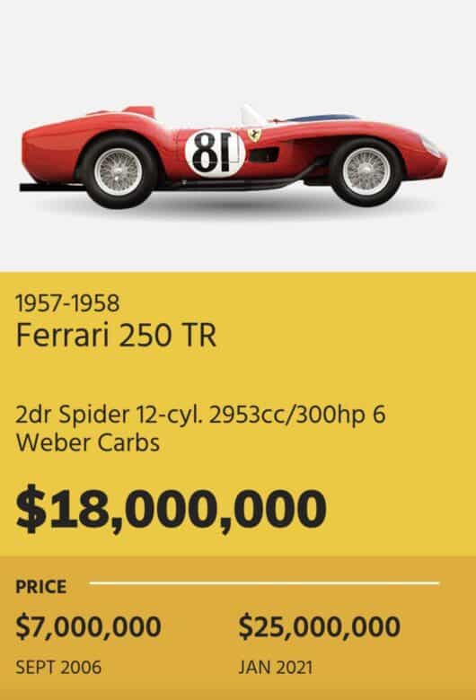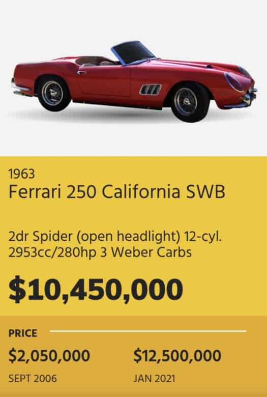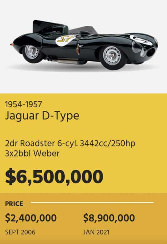 Here, we highlight the top 10 classic cars that are now worth a small island in the Bahamas. You can check out more details here about the classic cars worth $100,000+ with the biggest value growth, and the classic cars worth under $100,000 that gained the most value.