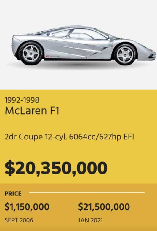 We collected car price data using the Hagerty valuation tool in February 2021. Prices were collected for the last 15 years (2005 – 2021) for over 24 thousand vehicles assuming “Concours” condition (the best condition). The appreciation of each vehicle was calculated in USD and %.