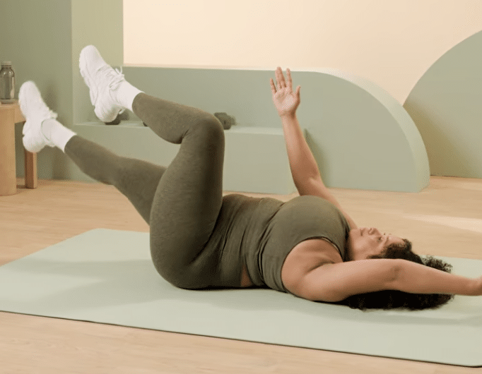 Lie on your back with your knees bent, keeping your feet flat on the floor.