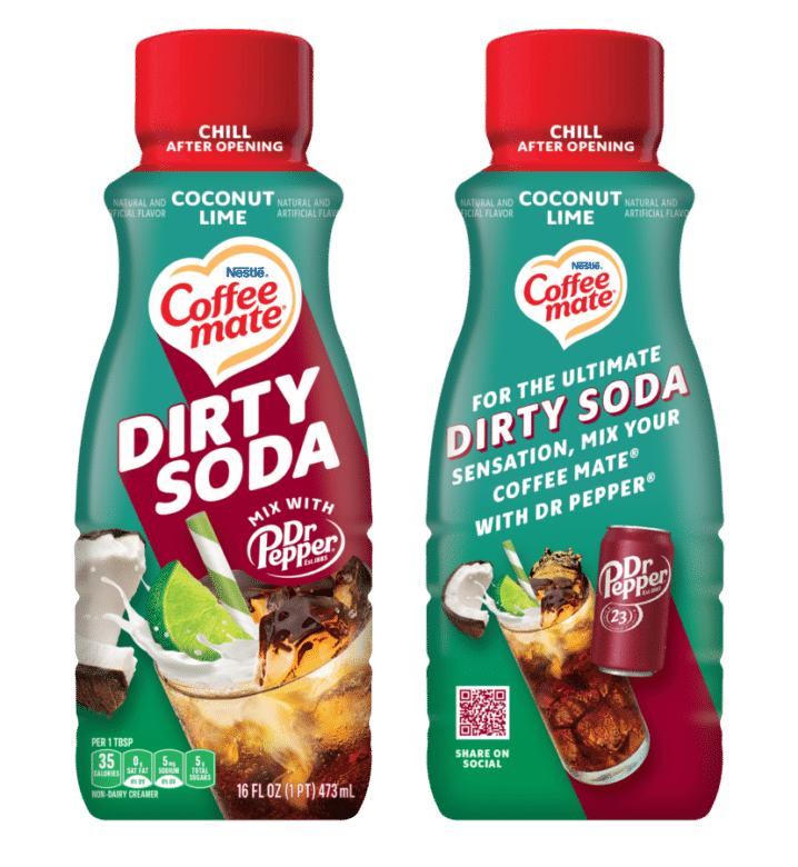In partnership with Dr Pepper, the new Coffee Mate Dirty Soda Coconut Lime Flavored Creamer is made to pair with Dr Pepper’s 23 flavors, adding the flavors of cream, coconut, and lime to the soft drink—no extra ingredients required.
