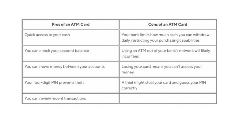 Here is a summary of the advantages and disadvantages of ATM cards to help you understand ATM cards vs. debit cards: