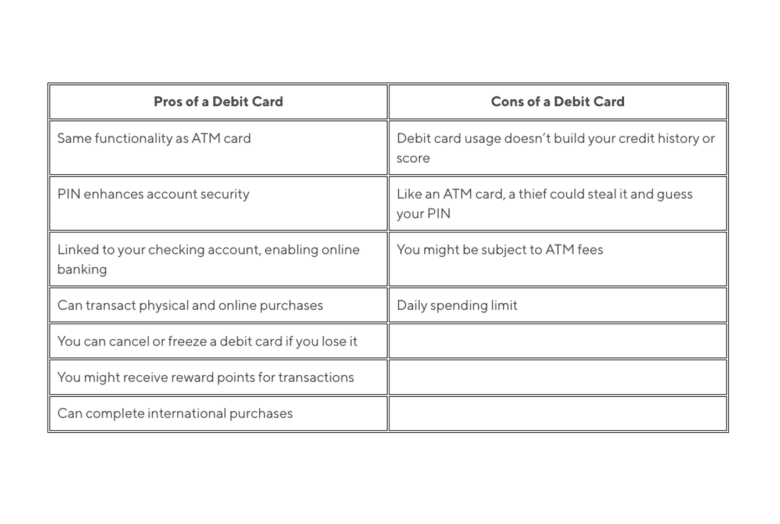This list of pros and cons of debit cards can help you see the difference between a debit card vs. an ATM card: