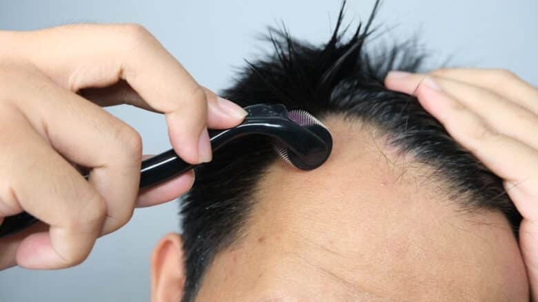 A dermaroller is a tool with tiny needles. It creates small injuries that may increase collagen production, as well as improve blood flow to the scalp and increase hair growth.