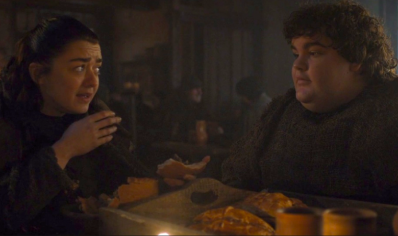 In season three, Arya Stark parts ways with one of her earliest traveling companions from King’s Landing, a baker’s apprentice named Hot Pie. Before she leaves, he gives her the gift of a loaf of bread in the shape of a direwolf, the sigil of House Stark.