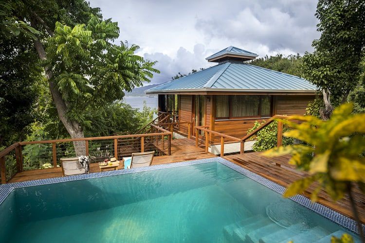 But what caught our eye were the private plunge pools and outdoor showers, hammocks and daybeds that made us daydream about moving to Dominica.