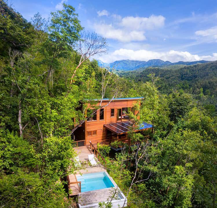 The freestanding villas have been built entirely out of sustainably-sourced tropical hardwoods and were developed in accordance with LEED standards in order to protect the local environment.