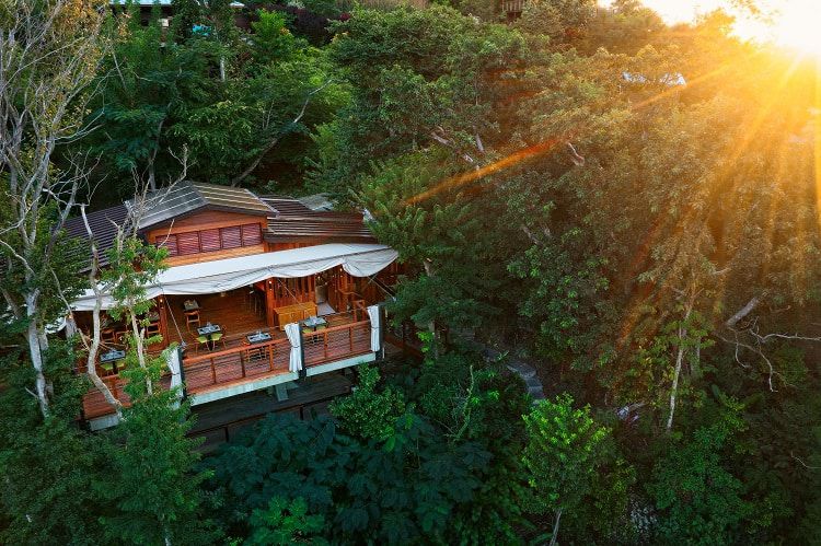 An idyllic treetop spa and wellness pavilion that serves as a riverside destination for intimate wellness classes and indulgent spa service that uses local ingredients designed for natural healing.