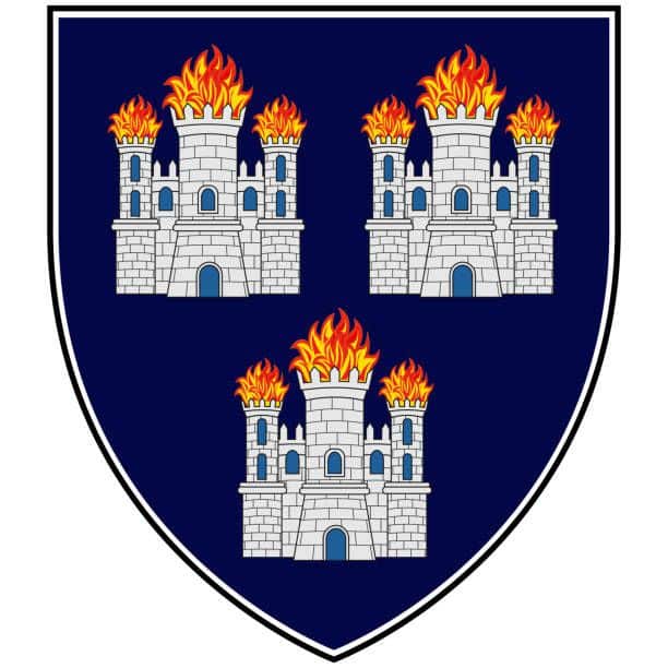 •  The three castles on the Dublin crest represent Dublin’s history as a city: (1) “Dubh Linn” or “Black Pool”, built by the Vikings in 841 AD, (2) St. Mary’s Castle, built in 1169 by Strongbow, who conquered Ireland for Henry II of England, and (3) Dublin Castle, which served as a seat of British rule for over 700 years.