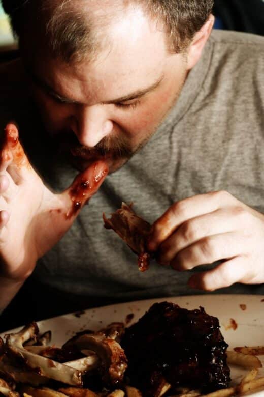 Eating ribs is and should be a messy affair. Eat it only with your hands, lick your fingers, smack your lips, and wipe your mouth with the back of your hand. That’s it. There’s no other way to enjoy this meal. So eat it with your hands, but maybe don’t order it on a date or a business lunch — we still live in civilized society.