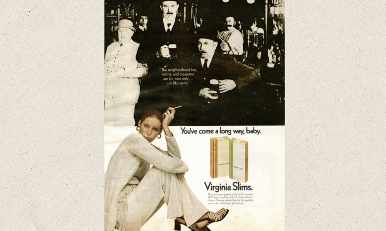 Magazine advertisement for Virginia Slims cigarette, 1970.