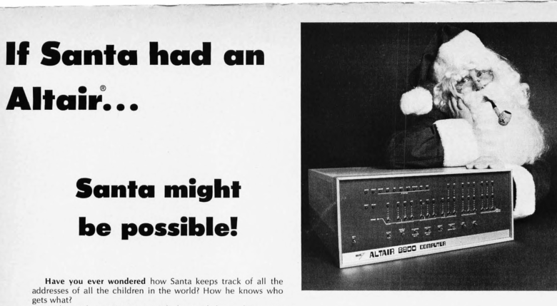 A 1975 Christmas-themed advertisement from Byte magazine for the MITS Altair 8800 microcomputer.
