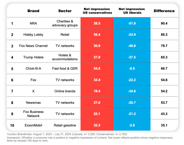 These are the top 10 brands conservatives view positively.