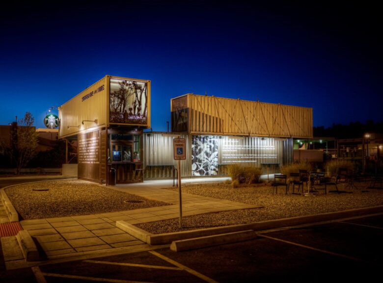 This Starbucks is made out of four storage containers. The unique design choice is meant to pay homage to Seattle’s shipyards.