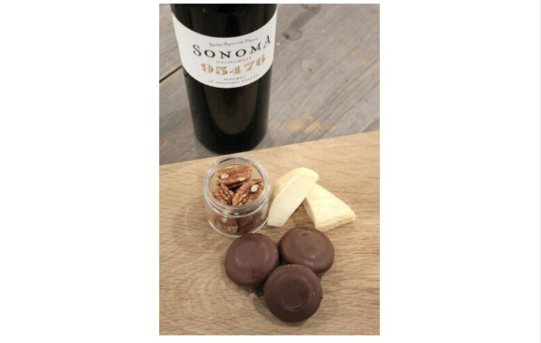 S’mores go with anything, especially a Petit Blue and a Pickberry, a rich and full-bodied wine. The Petite Blue is best described as a cross between a brie and a blue cheese, a mold-ripened triple crème cheese. Pickberry is the name of a vineyard near Glen Ellen in Sonoma, and the wine is typically a blend of reds like merlot, cabernet sauvingon, cabernet franc and petite verdot