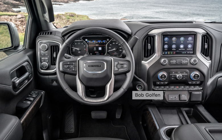 That cloud does have a silver lining, the Denali boasting a very-attractive interior with dark wood and aluminum trim, plus loads of buttons, switches and a big video screen. The premium Bose audio system is terrific. A color heads-up display on the driver’s side of the windshield reveals such info as vehicle speed, local speed limit and following distance from vehicles ahead.