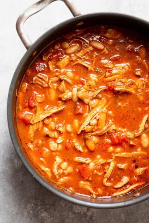 The colder weather is begging for a bowl of this comforting Easy White Chicken Chili – made in one pot, and packed with chicken, white beans and spicy chili