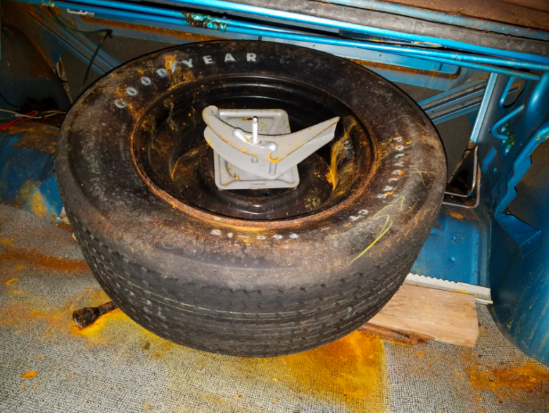 VanDamia inspected the car — he said the exterior was covered in raccoon feces — but found the numbers to be matching and suspected the mileage was accurate because of the relative cleanliness of the engine bay. All the tires, including the spare, retained their grease pencil makings, indicating they had been filled at the factory.