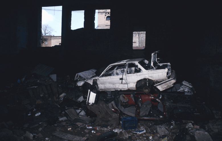 A car left inside Rio Piedras theater 1996, formerly The Broadway Theater opened in 1904, at Stockton, Brooklyn.