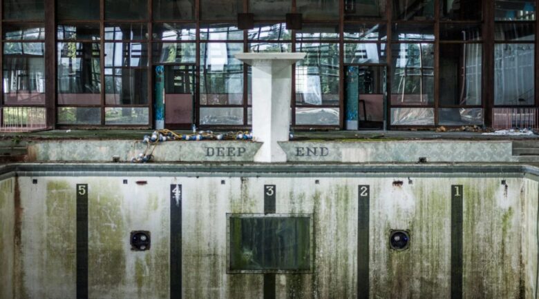 The Grossinger Resort had it all and, in its heyday, was one of the largest resorts in the Catskills. The indoor pool featured a beauty salon with a view to a kill. A large 5 foot by 4-foot plate glass window where you could watch swimmers dive by while getting your hair and nails done. Most of the resort buildings were demolished in 2018 after decades of abandonment and overgrowth.
