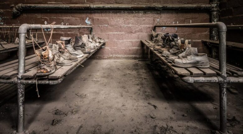 Opened in 1931 and described as sounding like rolling thunder when in operation, the hulk went silent as the last coal dropped in 1965. Miners work clothes, boots, machinery, all of it, left to rot.