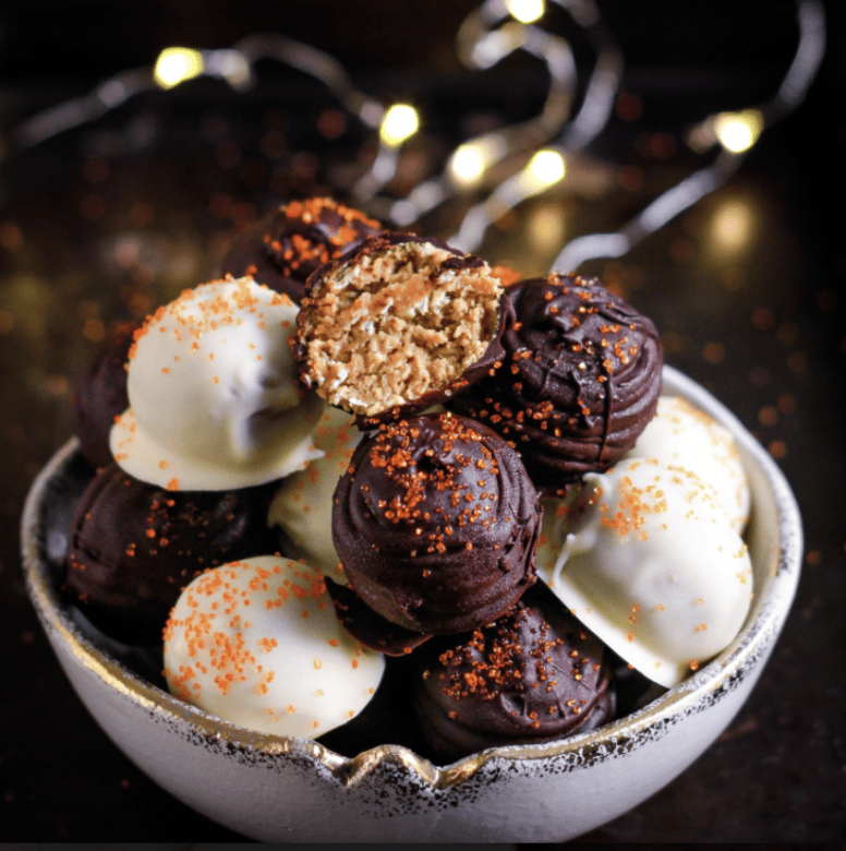 These fudgy bliss balls are the perfect sweet treat for enjoying during the Halloween season.